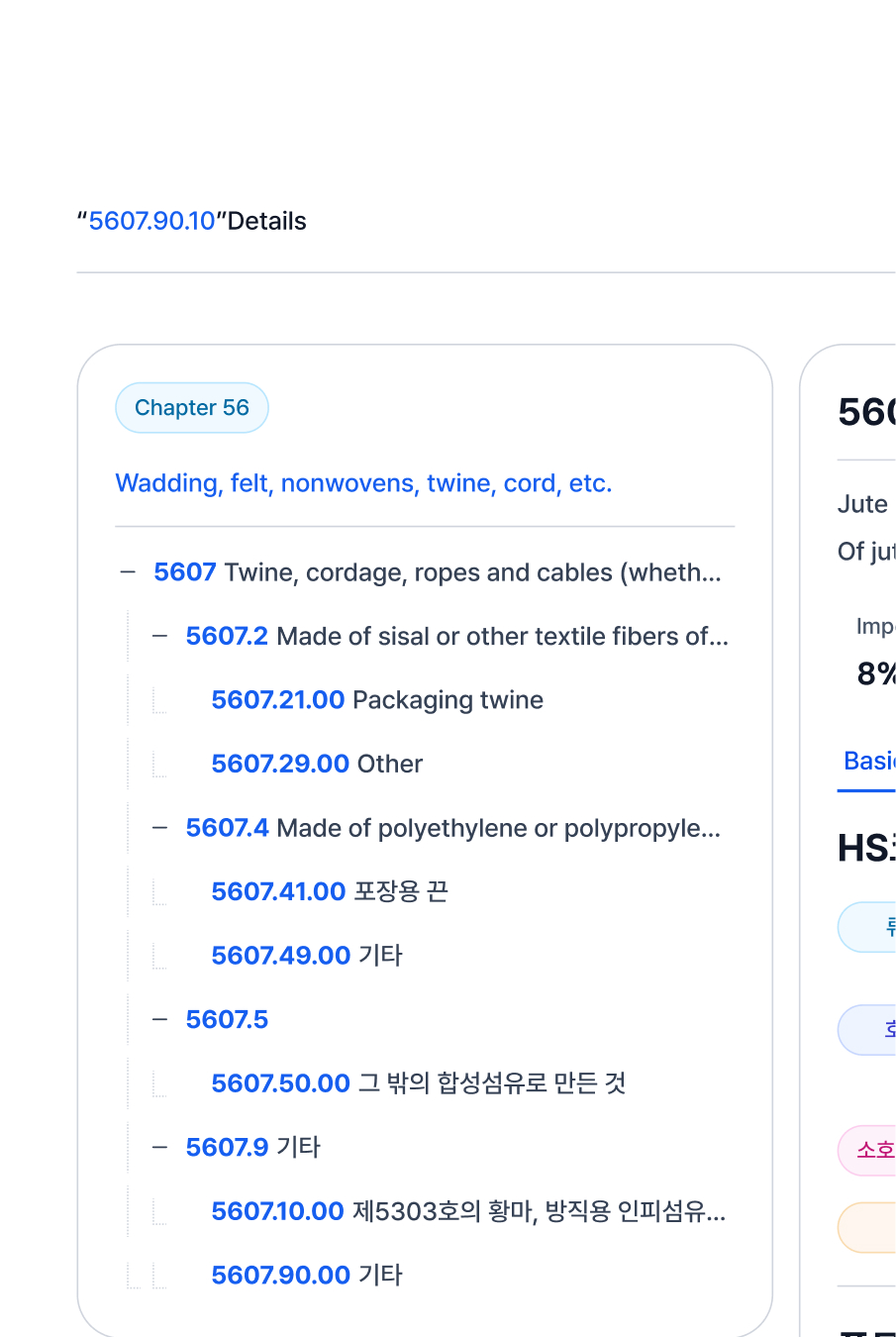 - 상세한 HS 코드, 제품 분류, 관세 정보를 찾아보세요.