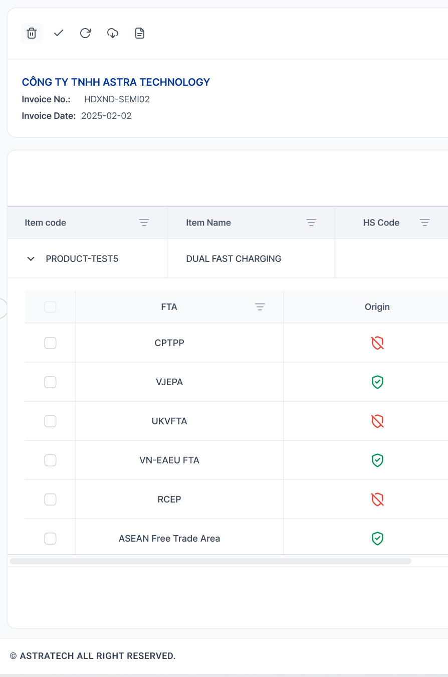 - 협정별 원산지 적격 여부를 자동으로 확인합니다.